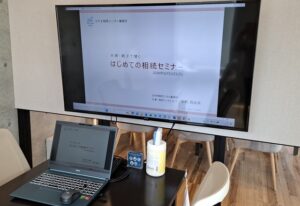 ただ、親なきあとセミナーの会場の写真を見ると、一般セミナーの会場と違ってモニター画面がなくて、そこにあるのはホワイトボードなんですよ。