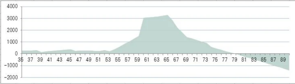 例えば、子育てがひと段落したら奥さんがパートで働くとかして、資産の延命を図ったらこうなれる可能性もあるわけです。